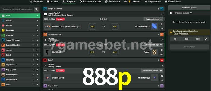 A aposta 888p oferece aos jogadores a experiência mais conveniente de apostas em eSports!